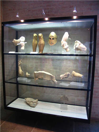 爱法伊娥神殿(图1)建在距离埃伊那岛中心城镇13公里的山上,其三角墙上的群雕是埃伊那岛上最著名的考古发现,于1812年卖给巴伐利亚王储路德维希一世,并从此存放于慕尼黑的古代雕塑展览馆(Glyptothek) (图2)。