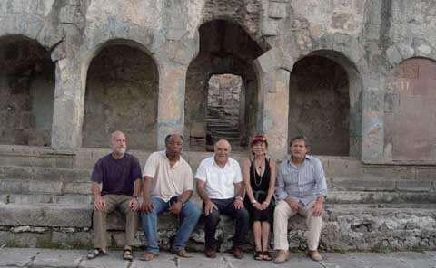 图中前排左三是撒丁岛创作营最高行政长官Efisio,左四是中国雕塑家赵莉,左五是艺术基金会主席Roberto。