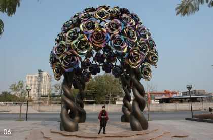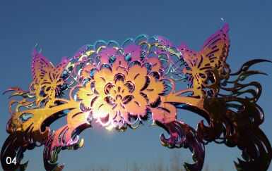七彩金属艺术是黄剑经过多年的研究和实践,精心创造出的一种新型的雕塑工艺。其色彩璀璨夺目,幻变无穷,具有奇美无比的艺术效果。在阳光的照耀下,更是流光溢彩,变幻迷离,美仑美奂。其色泽稳定持久,可经风雨暴晒,不锈不朽,历久如新。 近年来,黄剑用七彩金属工艺创作了丰富多彩的艺术作品,受到国内外专家的一致好评和公众的广泛赞赏。